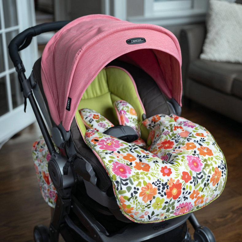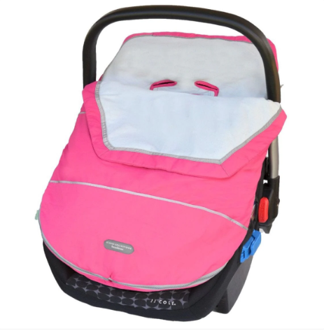JJ Cole® car seat covers are specifically designed for safe use. They fit over the carrier handle and don't interfere with harness straps or safety mechanisms. Always ensure proper car seat installation and never place covers underneath your baby.